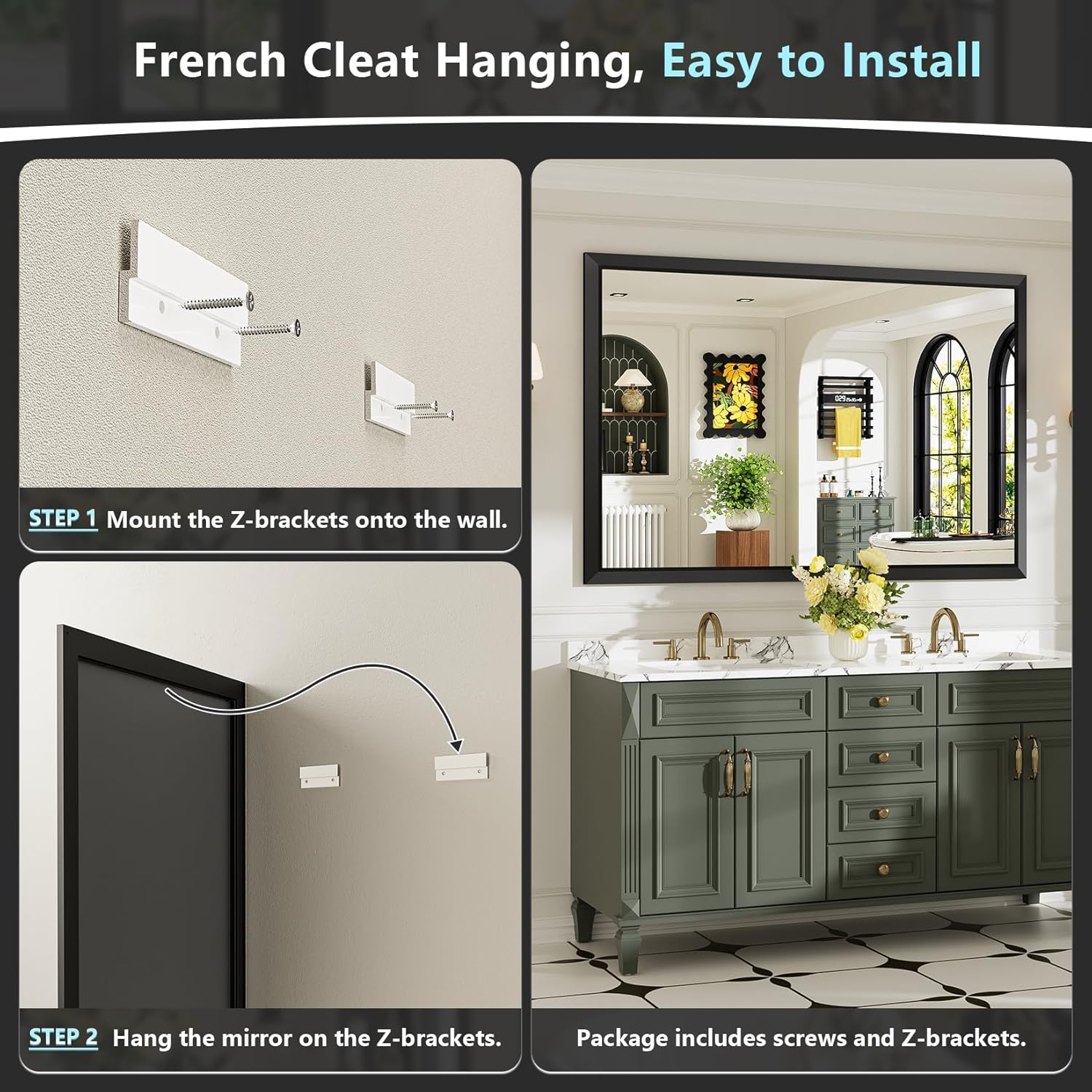 | Additional Features | Beveled Aluminum Alloy Framed, French Cleat Mounting, Hang Horizontally or Vertically, High Definition, No Distortion, Tempered glass, Shatterproof, Rustproof |