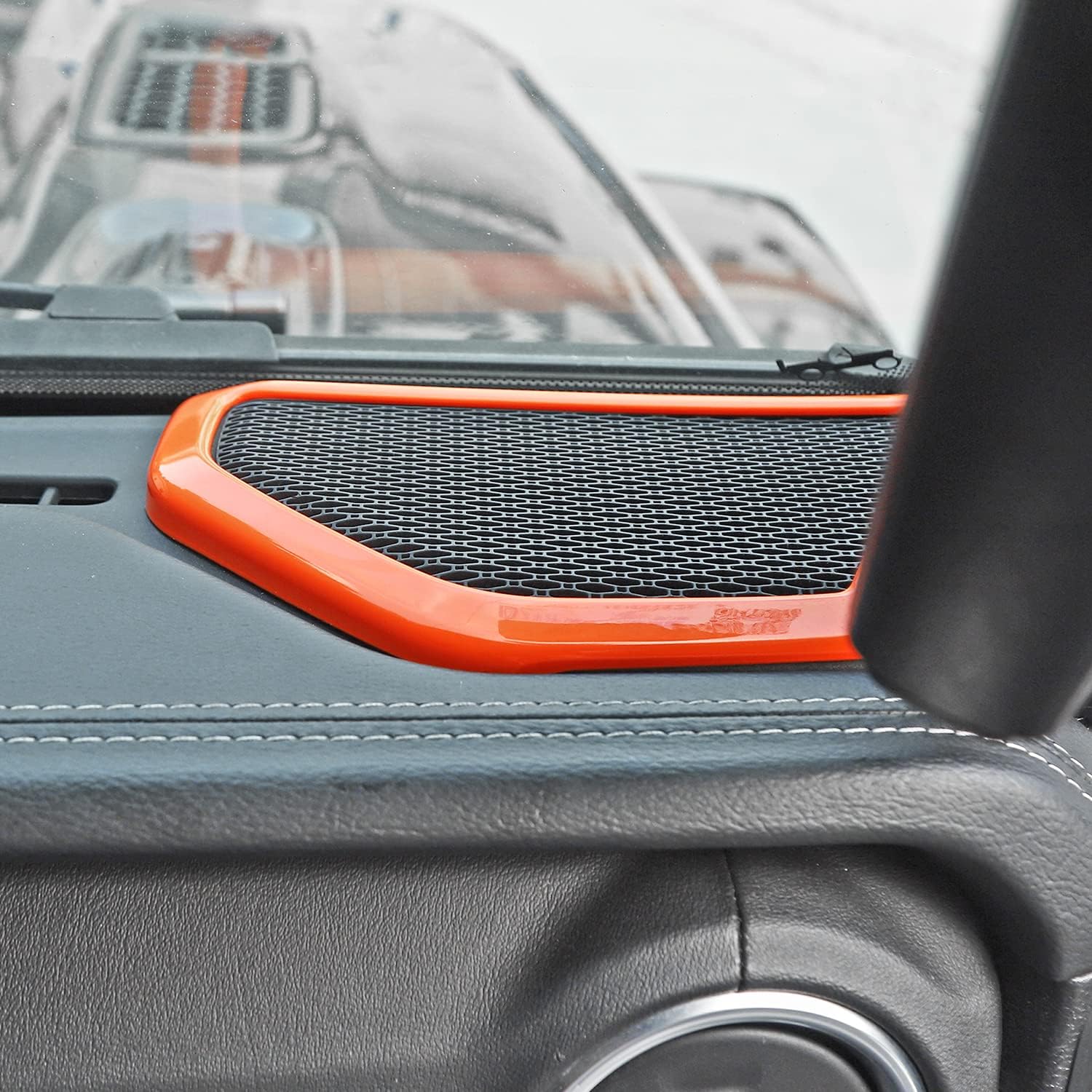 Description: JeCar A-Pillar Speaker Cover Trim Interior Accessories for 2018 2019 2020 2021 2022 2023 2024 Jeep Wrangler JL JLU & Gladiator JT. Features: - Provides a high-class and fashionable decoration style for your Wrangler or Gladiator. - With an orange finish look, break up the black interior and add a pop of bright color to your vehicle. - Protecting your interior from scratch or wear. - Made of high-quality, durable ABS material. - Original car data design, perfect match. - Come with double-sided tape for easy installation. Practical, beautiful, and durable, If you want to make your car more unique and cooler, this interior trim is an excellent choice. Package Included: 2* A-pillar Speaker Cover Bezel Trim Installation Tips: Please clean the covered area thoroughly; keep dry without dust; Heat the adhesive tape with a hair dryer or lighter; Paste the accessories in the corresponding position and press them with your hand to make them more solid.